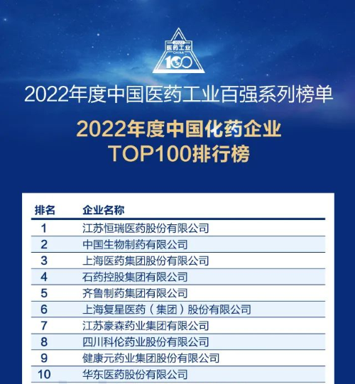 佳音频传!利来国际真人娱乐医药再次蝉联中国化药企业百强榜首