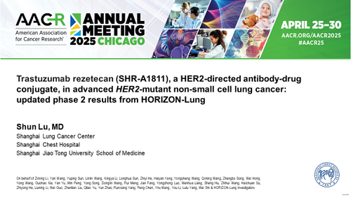 2025 AACR口头报告|利来国际真人娱乐创新药瑞康曲妥珠单抗治疗晚期HER2突变非小细胞肺癌研究结果披露